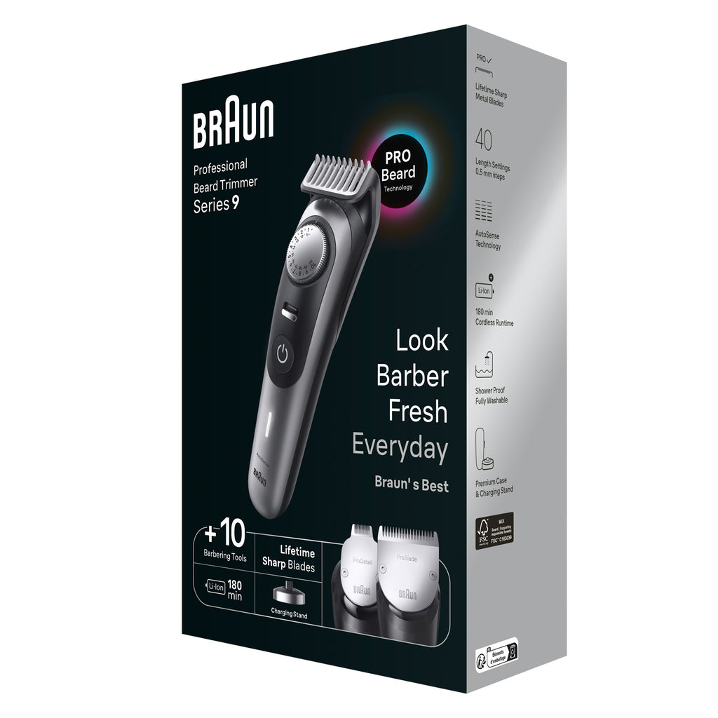 - Professional precision & 100% control: look barber fresh everyday with Braun’s Professional Beard Trimmer 9.