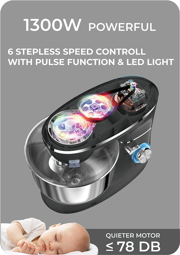 • Easy to Clean: All attachments and the stainless steel bowl are easy to clean, saving you time and effort after baking.