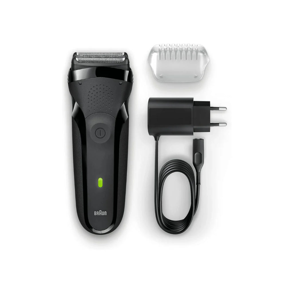 Braun Series 3 S300 is designed with 3 flexible blades that move with every facial contour for maximum skin contact and efficiency in one stroke. Tough on Beards, Smooth on Skin: The Braun Series 3 rechargeable electric foil shaver delivers a robust performance for effective beard trimming while ensuring smooth and comfortable skin contact.