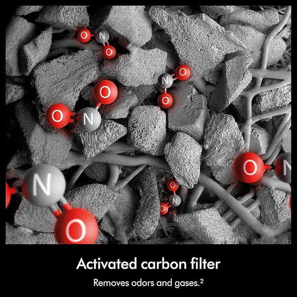 • The 360° Activated Carbon filter removes pet and cooking odors, and even gases such as NO₂. Traps airborne pollutants on a highly porous surface, capturing unpleasant smells and harmful gases.