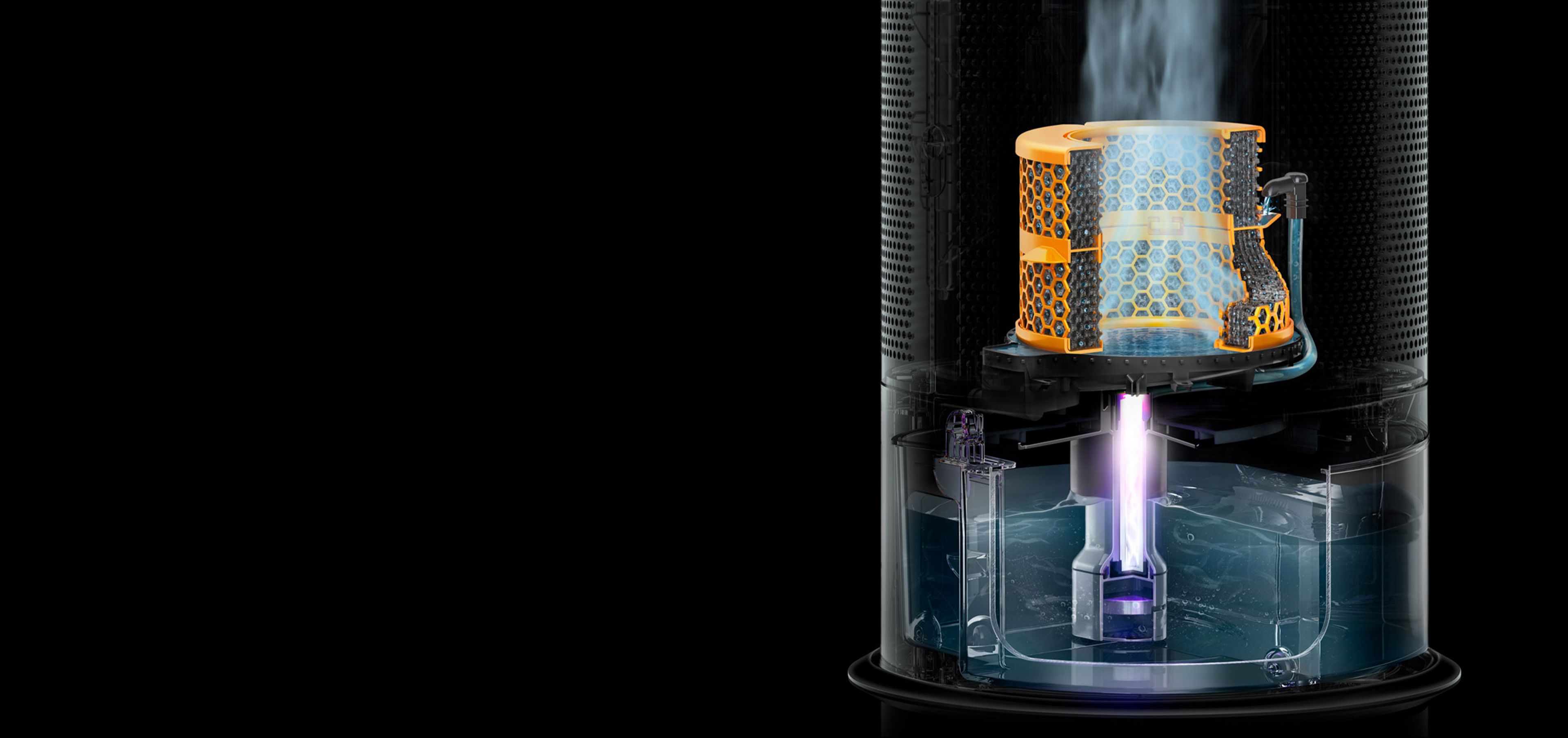 The Dyson Ultraviolet Cleanse technology in the Dyson PH2 humidifier exposes every drop to powerful UV light with a wavelength of 275 nm, killing 99.9% of bacteria in the water for hygienic humidification.