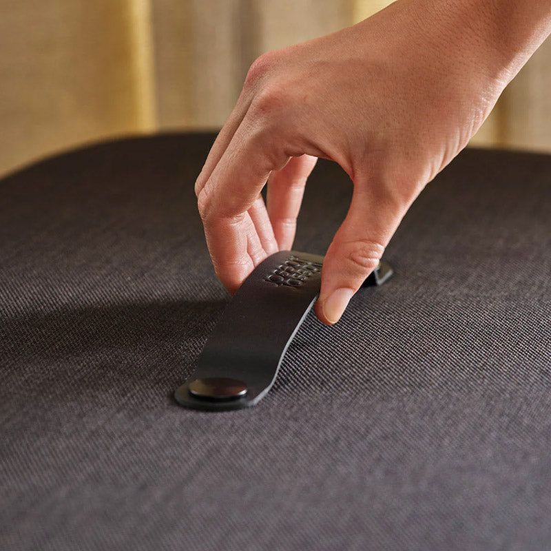 - Luxury bamboo exterior and fabric-wrapped lid with leather handle.