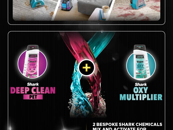 Instantly remove stains and odours: Shark’s dual-activated cleaning solution combines two bespoke cleaning formulas, which mix and activate inside the handheld tool to deliver 20x more stain-striking power*. No heat or pre-treat required.