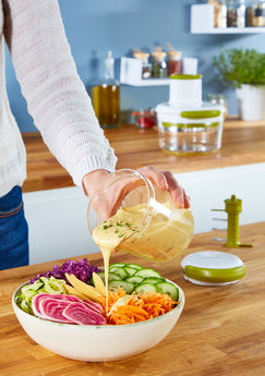 Chop and shake your way to a mix of flavors, from tasty sauces and marinades, to delicious vinaigrettes and dressings. With the 5-Second Chopper Shaker by Tefal, enjoy fast, efficient chopping on even hard ingredients, such as onions and nuts, with just a few pulls. Then add your liquids, close the lid and pull the handle or shake to mix it —for fast, easy mixing. Perfect results on all your favorite recipes are just a chop and shake away!