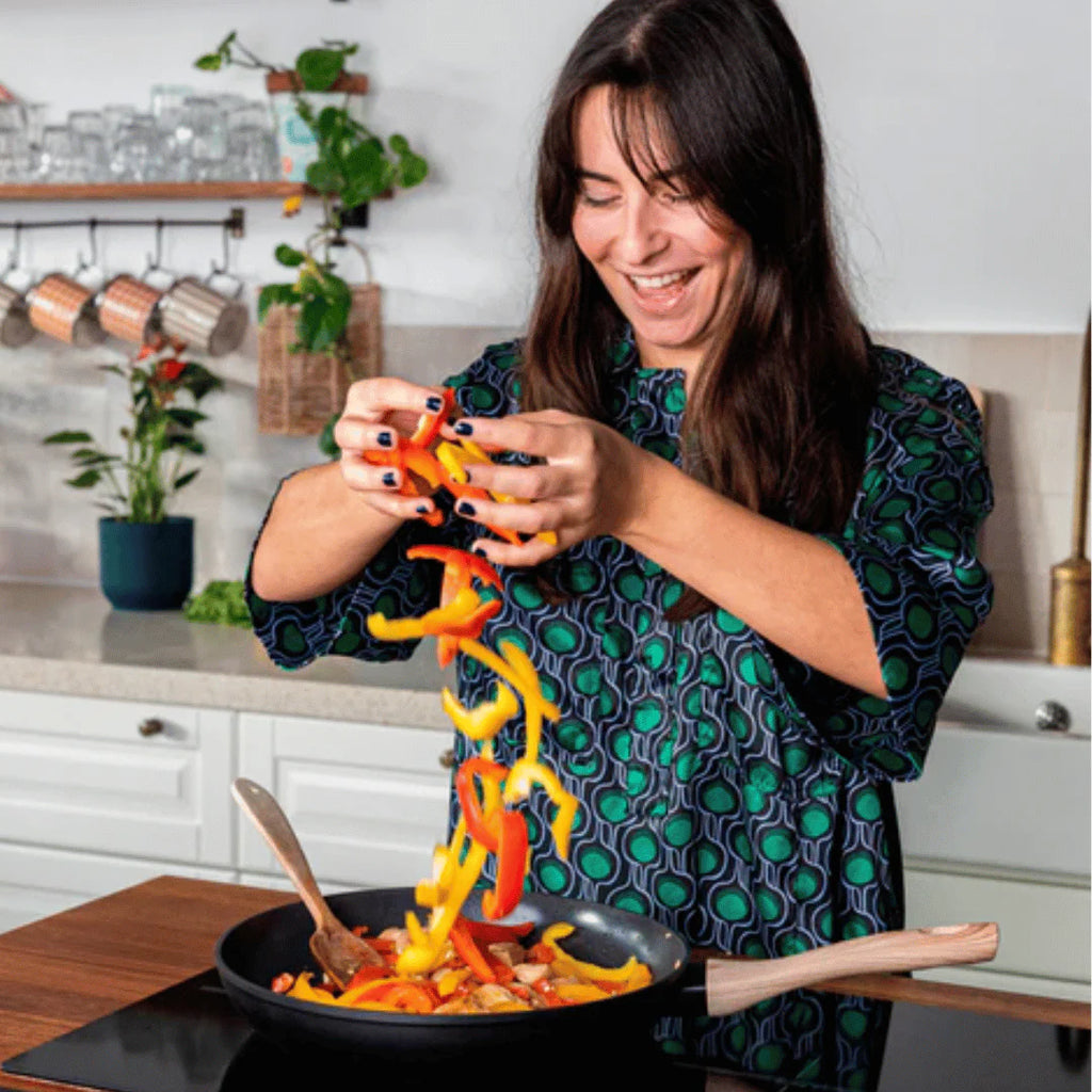 Cook&Care is compatible with all types of cooker, including induction, and features a body made of 100% recycled and recyclable aluminum, an ultra-resistant, healthy non-stick ceramic coating (PFAS-free), and an attractive handle with a soft-touch finish for a comfortable grip. Perfect for all your recipes, without compromise!