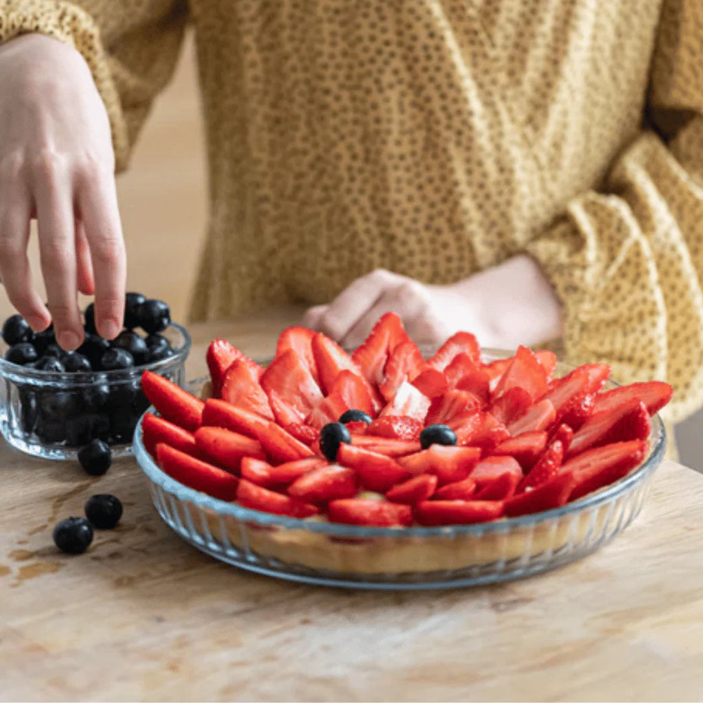 This essential Pyrex® versatile flan dish, crafted from premium borosilicate glass for durability and reliability. Ideal for baking and serving both sweet and savory creations, this dish provide even heat distribution for consistently delicious results. The clear glass allows you to easily monitor your bakes, while the slightly raised edges help contain fillings for clean, professional-looking presentations.